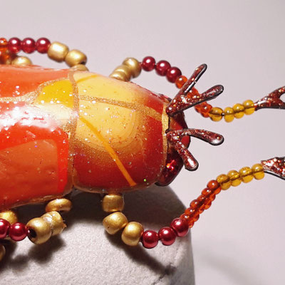 Der Scarabäus war im alten Ägypten ein göttliches Tier und hatte einen starken solaren Aspekt, da die von ihm geformte Dungkugel mit der Sonne (Kreis) und dem (endlosen) Sonnenlauf gleichgesetzt wurde. Dies soll sich auch in meinem Stück wiederfinden.